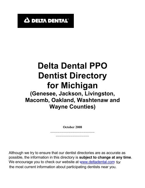 Delta Dental Ppo Dentist Directory For Michigan Benefits Umich Edu
